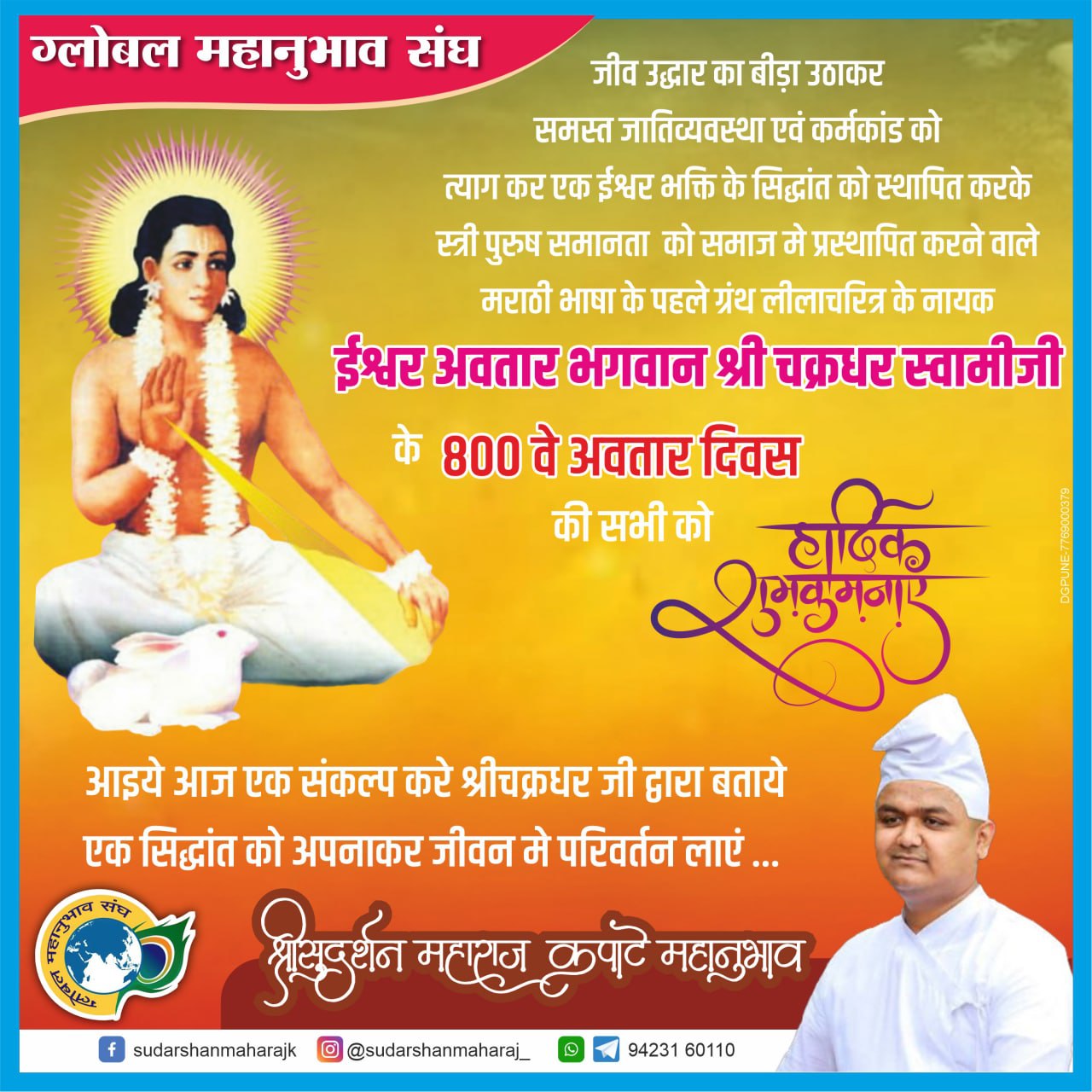 Celebrating the Eighth Centenary of Sarvadnya Shri Chakradhar Swami August 30, 2022 by The Messenger of the Immortal Love Post Views: 778